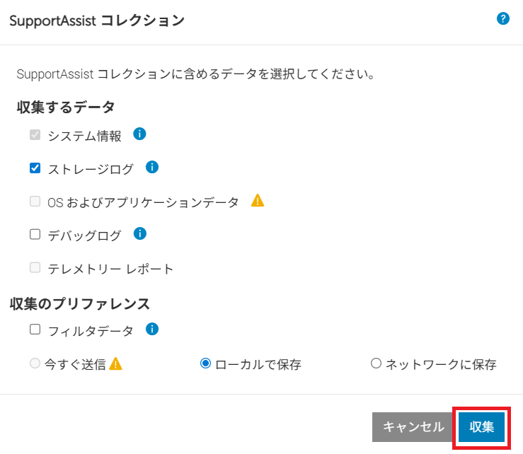 ポップアップが表示されますのでデフォルトのチェックのまま[収集]をクリックします。