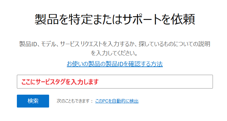 DELL社の サポートサイト にアクセスしてサービスタグを入力します。